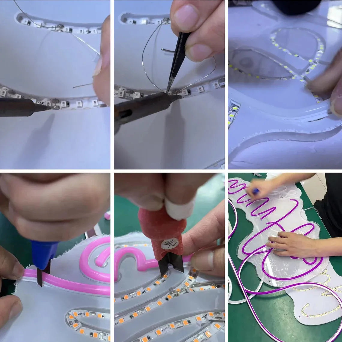 -5mm thick acrylic panels, and flex neon light strips and LED light strips.