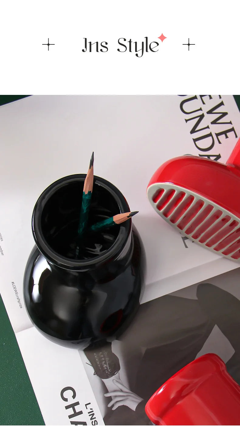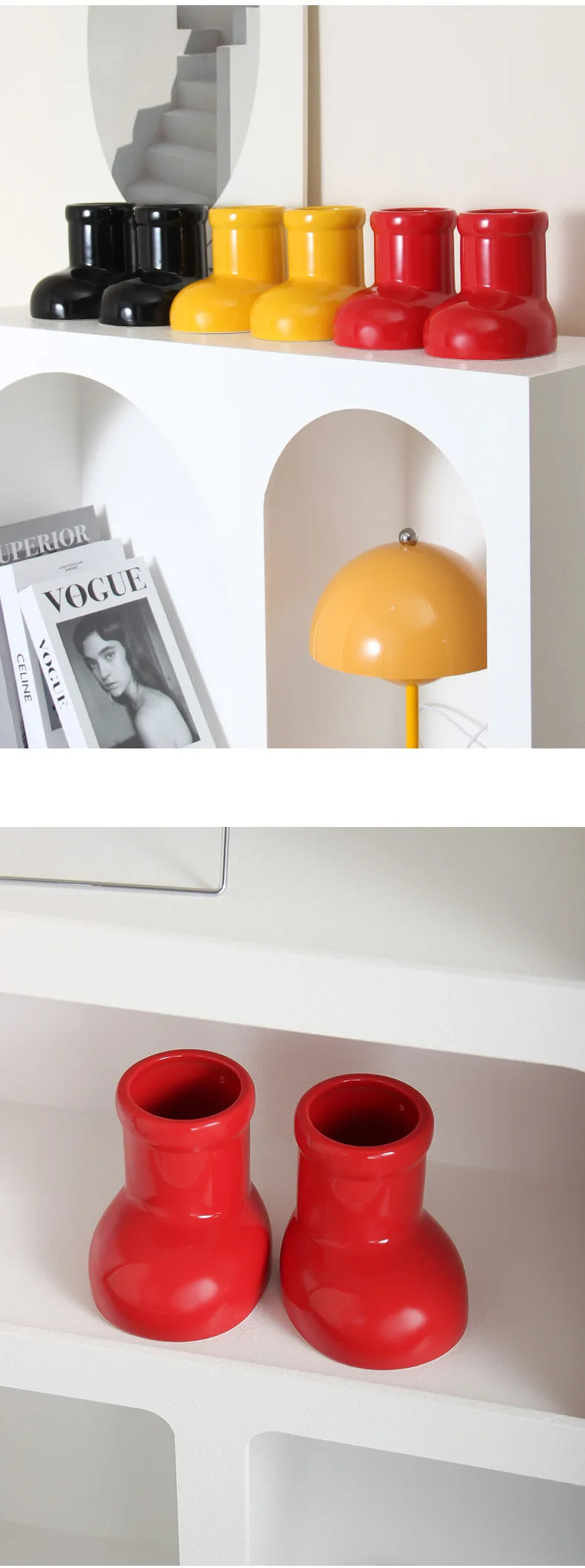 Ceramic Vase Boots Shoe Cute Cartoon Pen Holder Tabletop Storage Ikebana Flower Vase Boots Pot Home Decoration Accessories