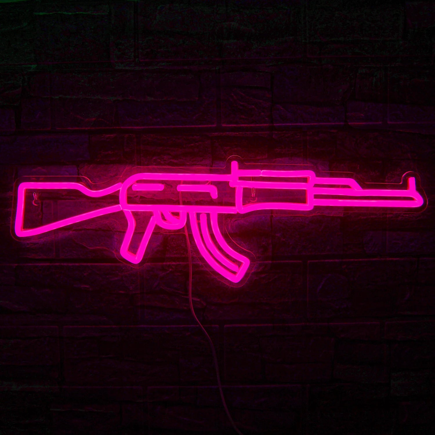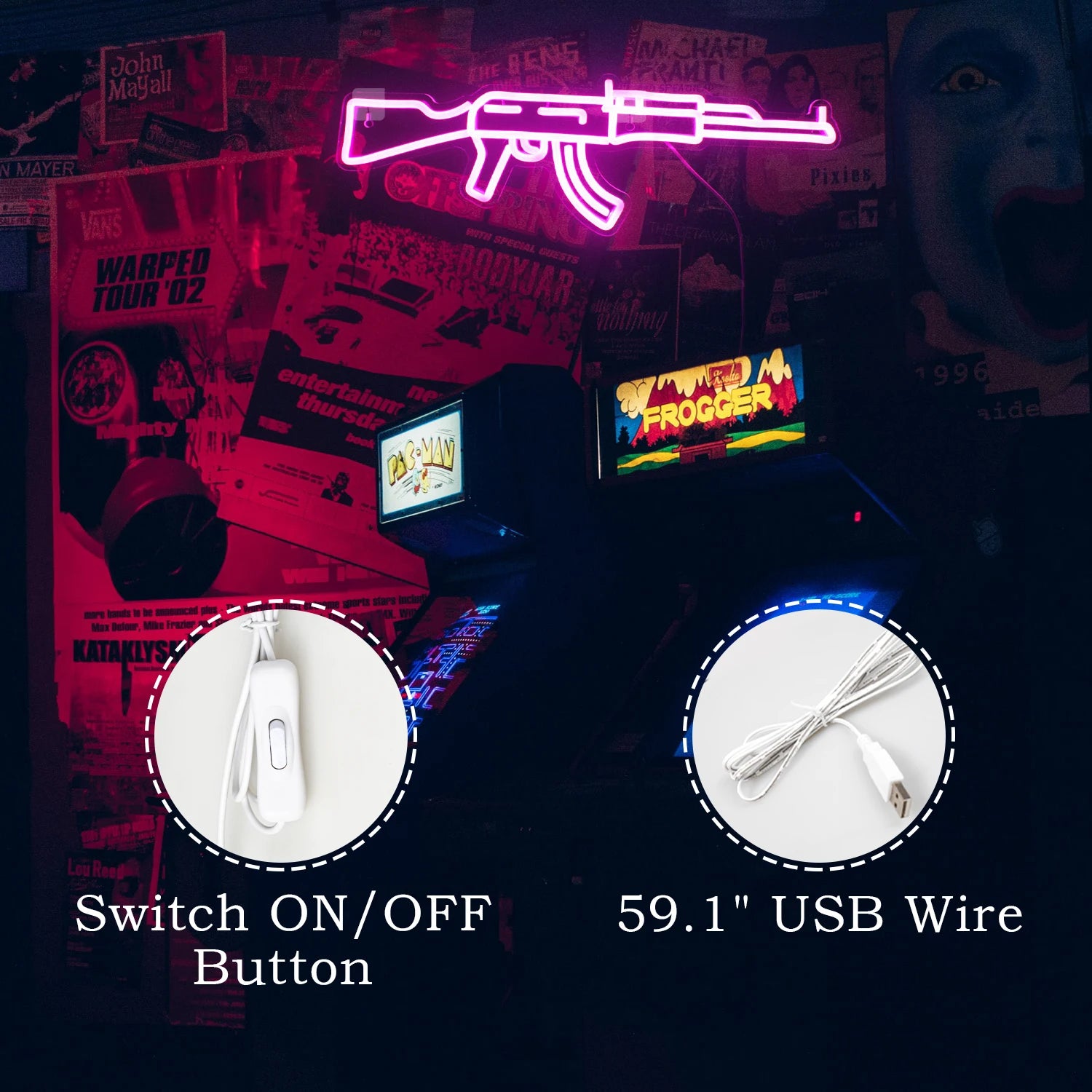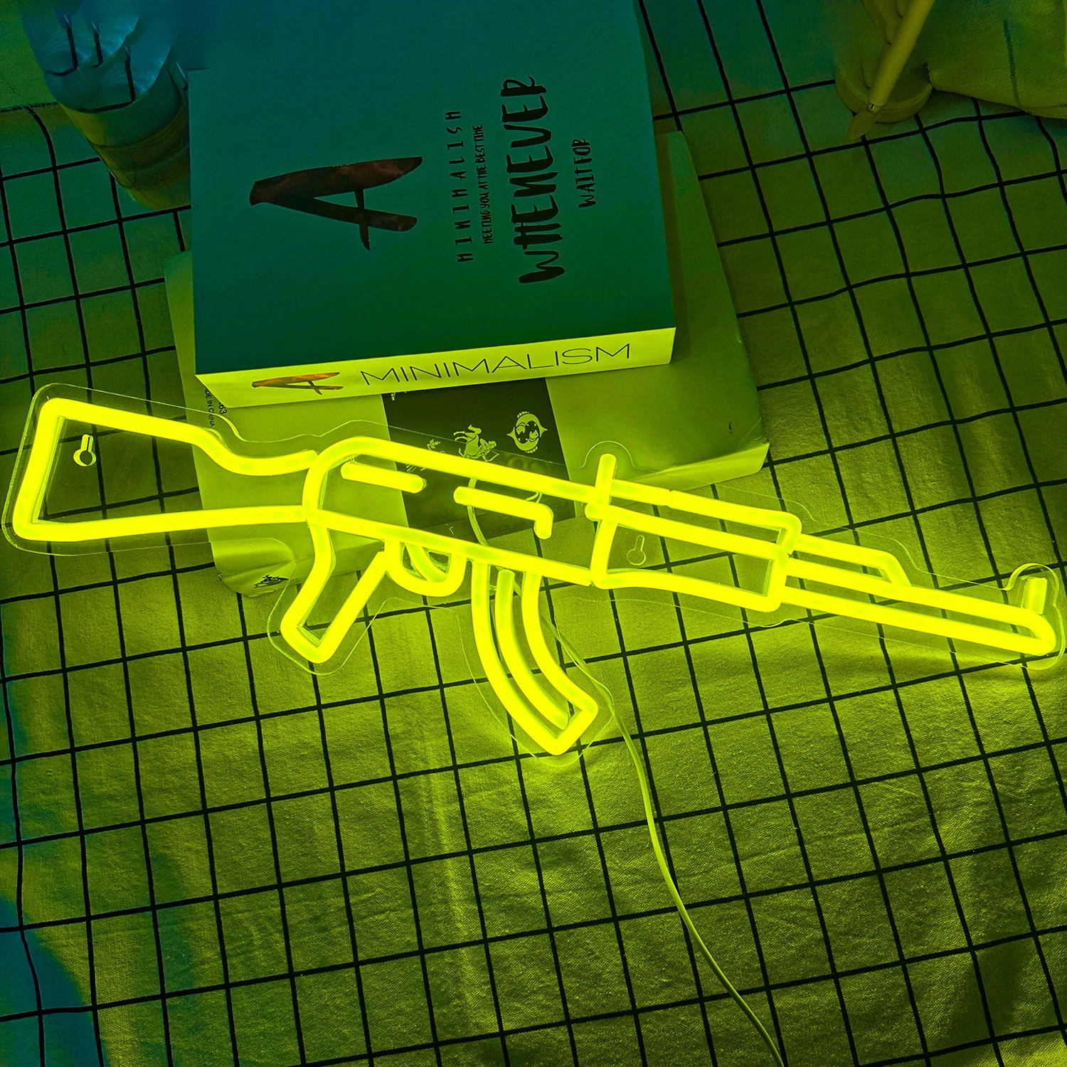 ◆AK 47-LED Hanging Gun for Game Lighting, Bedroom Wall Decor, USB with Switch, Acrylic, Super Cool, Game Room, Bedroom Decor