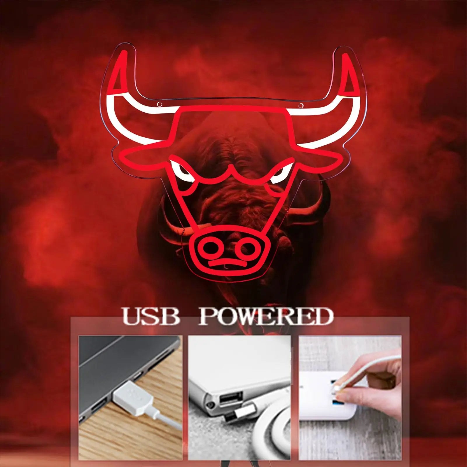 Red LED Bulls Neon Sign Chicago Sports Team Club Pub Bedroom Office Hotel Birthday Party Wall Decor Gift for Chicago Fans
