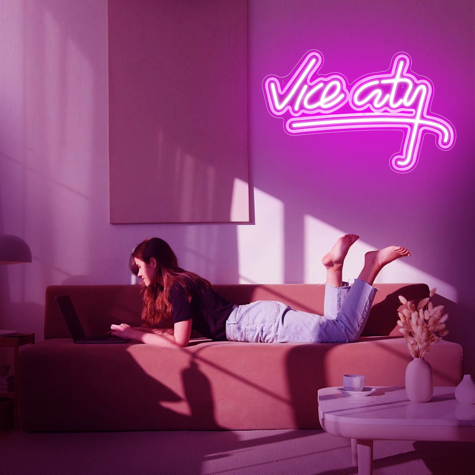 Vice City Neon Sign for Wall Decor, USB LED Neon Light, Bedroom, Kids Room, Game Room, Bar, Party Decor, Man Cave Home Artwork
