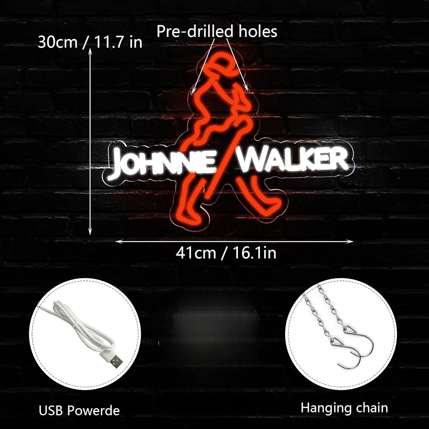 Whisky Neon Sign For Johnnie Walker Bar Pub Led Light Suitable For Garage Decor Business Display USB Powered Easy Hanging